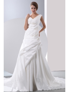 Elegant A-line Sweetheart Wedding Dress Court Train Taffeta Appliques With Beading