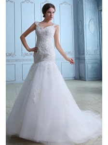 Fashionable Wedding Dress Mermaid Straps Court Train Lace