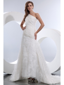 Popular Wedding Dress A-line Ruch One Shoulder Court Train Taffeta and Organza