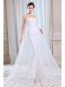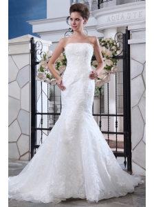 Pretty Mermaid Strapless Appliques Wedding Dress Court Train Tulle