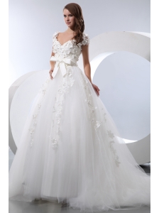 Sweet Wedding Dress A-line Sweetheart Ruch and Appliques Court Train Tulle