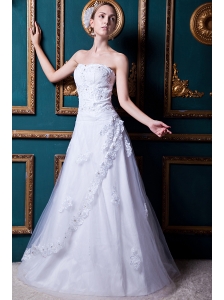 Formal A-line Strapless Floor-length Tulle and Taffeta Appliques Wedding Dress