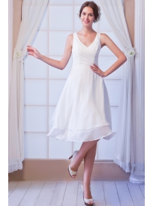 Simple A-line V-neck Knee-length Chiffon Wedding Dress