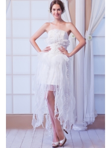 White Column Strapless Asymmetrical Organza Beading Weeding Dress