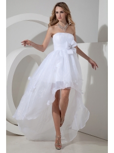 Beautiful A-line / Princess Strapless Short Wedding Dress High-low Organza Bow