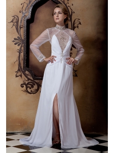 Beautiful Empire High-neck Beading Wedding Dress Court Train Chiffon