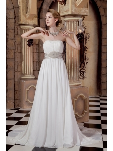 Elegant A-line Strapless Beading Wedding Dress Court Train Chiffon