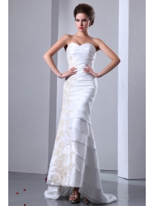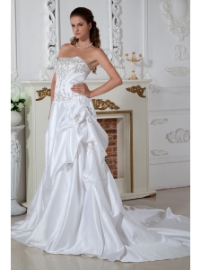 Pretty Wedding Dress Embroidery A-line Strapless Court Train Taffeta