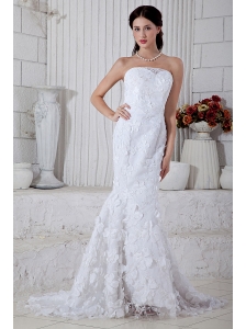 Perfect Mermaid Strapless Special Fabric Wedding Dress Brush Train