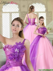Cheap One Shoulder Sweet 16 Dresses with Appliques and Ruffles