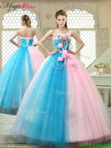 Fashionable Hand Made Flowers Quinceanera Gowns with Strapless