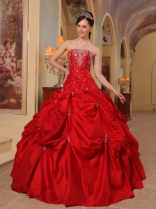 Affordable Red Quinceanera Dress StraplessTaffeta Beading Ball Gown
