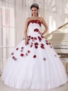 Elegant White Quinceanera Dress Strapless Satin and Organza Appliques Ball Gown