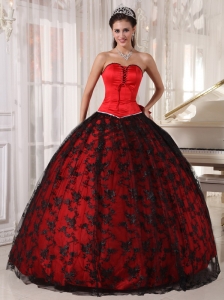Gorgeous Red Quinceanera Dress Sweetheart Tulle and Taffeta Lace Ball Gown