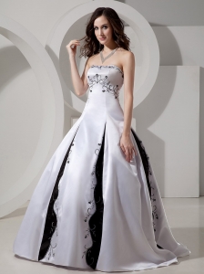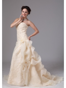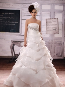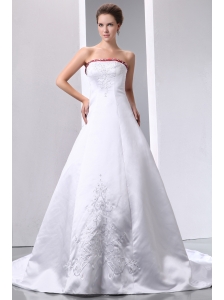 Luxurious Wedding Dress A-line Embroidery With Beading Strapless Chapel Train Satin
