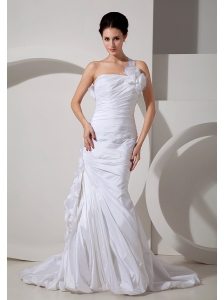 Best Wedding Dress Mermaid One Shoulder Hand Made Flowers Court Train Taffeta