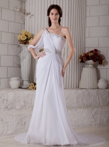 Elegant Column One Shoulder Beading Wedding Dress Court Train Chiffon