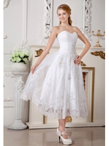 Informal Empire Sweetheart Short Wedding Dress Lace Appliques Tea-length