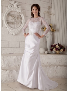 Remarkable Mermaid Bateau Lace and Appliques Wedding Dress Brush Train Satin