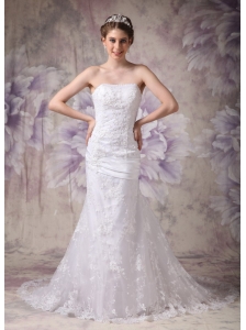Beautiful Mermaid Strapless Lace Wedding Dress Appliques Court Train