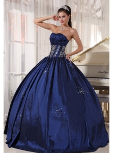 Modest Navy Quinceanera Dress Strapless Taffeta Embroidery and Beading Ball Gown