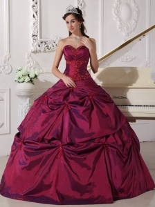 Beautiful Burgundy Quinceanera Dress Sweetheart Taffeta Appilques Ball Gown