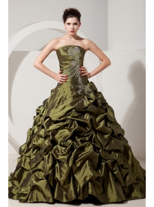 Olive Green A-line / Princess Strapless Sweet 16 Dress Brush Tain Taffeta Beading