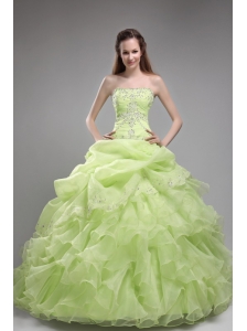 Romantic Spring Green Quinceanera Dress Strapless Orangza Beading and Ruffles Ball Gown