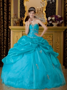 Popular Teal Quinceanera Dress Sweetheart Organza Appliques Ball Gown