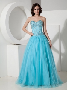 Fashionable Light Blue Quinceanera Dress One Shoulder Tulle Ruch A-line