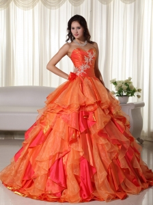 Orange Ball Gown Sweetheart Floor-length Organza Appliques Quinceanera Dress