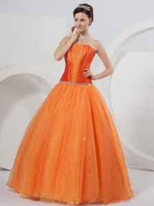 Orange A-line Strapless Floor-length Organza Beading Quinceanera Dress