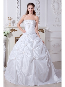 Beautiful A-line Strapless Embroidery Wedding Dress Court Train Taffeta