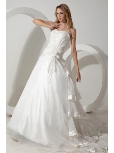 Elegant A-line Straps Wedding Dress Hand Made Flowers Brush Train Organza