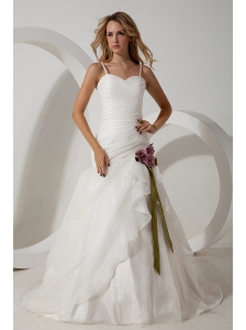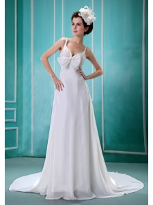 The Style White Chiffon Beaded Decorate Bust Spaghetti Straps Wedding Dress