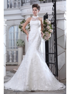 Pretty Mermaid Halter Wedding DressCourt Train Lace