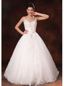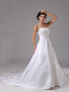 Spaghetti Straps For Wedding Dress With Lace Satin and Court Train