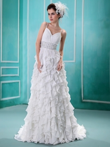 Spaghetti Straps Ruffled Layers Wedding Dress With Beading and Ruch