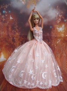 Romantic Pink Gown With Embroidery Dress For Quinceanera Doll