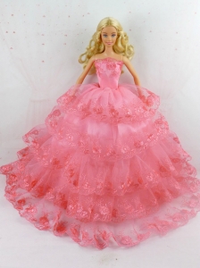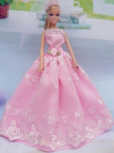 Ball Gown Lace And Appliques Baby Pink Handmade Dresses Fashion Party Clothes Gown Skirt For Quinceanera Doll