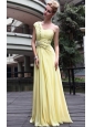 Yellow Empire One Shoulder Floor-length Beading Chiffon Prom/Party Dress