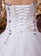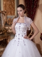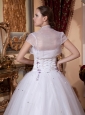 Sexy and elegance are the only immaculate words to describe this white wedding dress. It features straightline neckline and floral beading wrapping the fitted bodice. You will be the apple of their eyes at the party. Flirty tulle overlay dotted with shining beading starts form the dropped waist to create a luxury skirt for this eye-catching dress. It demonstrates the attitude of anything but ordinary. The matching jacket is a alternation according to your needs.