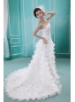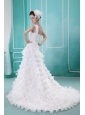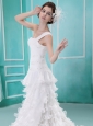 2013 A-line Ruffles One Shoulder Wedding Dress With Appliques Organza