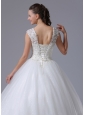 2013 A-line Scoop Wedding Dress With Appliques Decorate Bust Tull