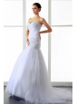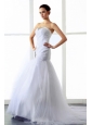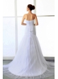 2013 A-line Wedding Dress With Beading and Ruching Sweetheart Brush Train Tulle