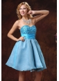 2013 Baby Blue Sweetheart Beaded Decorate Prom Dress With Mini-length in Cocktail