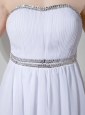 Do you love being a girly girl? Show off your soft and feminine side in this spectacular strapless white prom dress. A classic design gives the floor-length prom gown a dramatic look with sparkling accents on the strapless bodice. Two beaded bands accent the empire waist and sote chiffon form an amazing skirt. The seductive open back adds the interest and charm. This gorgeous prom dress is perfect for your semi formal, homecoming, or prom.