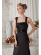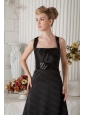 You don't have to be a movie star to dress like one. This gorgeous black dress makes it easy to get that red carpet look. It has two wide straps bodice which is decorated with vertical ruches in the bust. Broad sequined waistband modifies your charming figure. The A-line skirt flowing freely to the floor, and the hidden zipper-up style add elegance and modesty to this perfect gown. What a sleek, fashionable dress for any formal occassion!