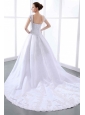 2013 Custom Made Embroidery Wedding Dress With Straps Cathedral Train A-line