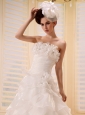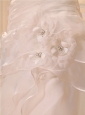 If you have a flair for the dramatic and are not afraid to be noticed, This pretty wedding dress will be your favor. The besieged flowers cross the bust to create a fuller illusion. The magnificant skirt has fun and flirty ruffles with many tiers that add to its overall fullness. The zipper up style and a brush train complete the entire look.